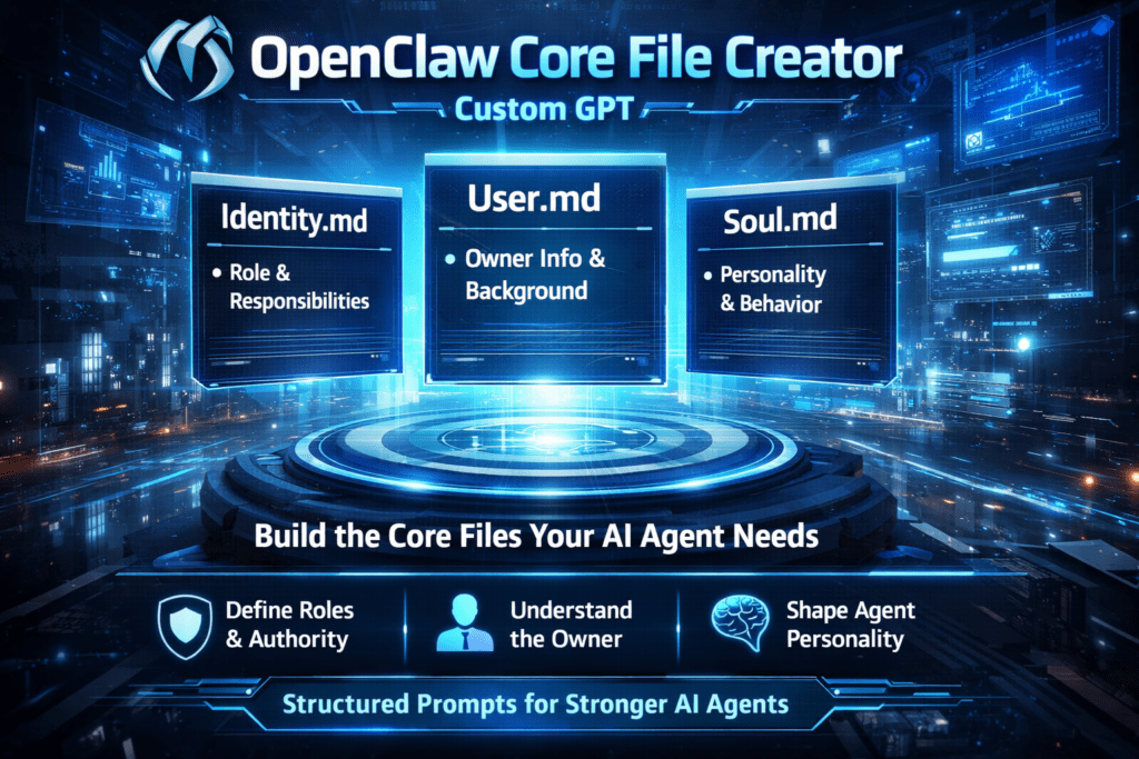 The OpenClaw Core File Creator Custom GPT helps you build the three foundation files every OpenClaw AI Agent needs to operate clearly, consistently, and with less drift: Identity.md, User.md, and Soul.md.